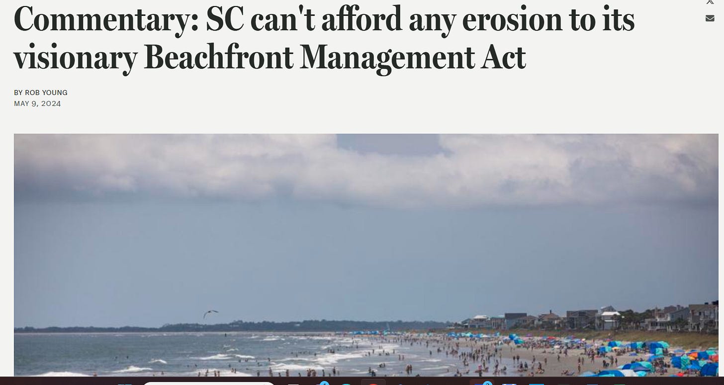 Sadly the SC Legislature is responsible for chipping away at SC Landmark Beachfront Management Act in the name of our robust tourism industry and in favor of more beachfront development when they abandoned retreat and replaced it with preservation of the beach in 2018.