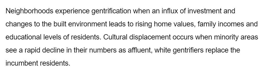 YES we need new quality development but should it be at the expense of cohesive communities that have been underserved for decades? Are we honoring our culture when we ignore it?